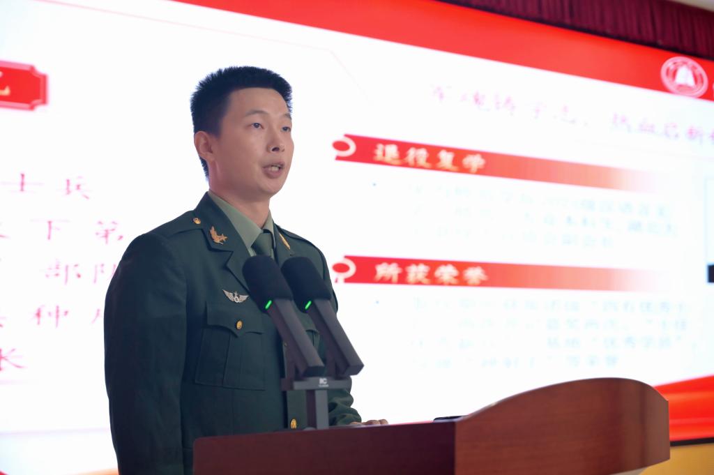 活动在湖北大学“戎誉之星”、2023级汉语言文学师范类本科生梁奕峰激情澎湃的国防教育主题宣讲中拉开帷幕。他深情讲述了自己五年军旅生涯中的难忘经历:从新兵连里反复打磨队列动作、参加联合演习演训任务到积极参加地方抢险救灾以及疫情防控等重大任务,梁奕峰用亲身经历生动诠释了新时代青年“把青春献给祖国”的铮铮誓言,更向全体新生发出“以青春之我,守护盛世中华”的强力号召。“我的从军生涯教会我‘国防’二字不只是书本上的概念,而是中华儿女生命中沉甸甸的责任与荣耀。”梁奕峰讲到。
