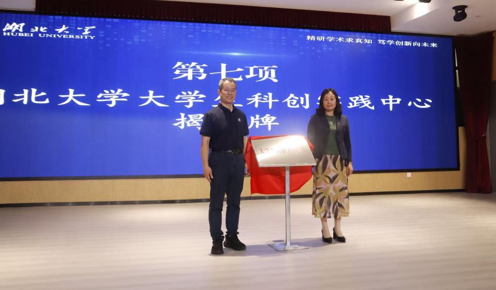 2025年10月10日上午,校党委常委、副校长李振,《中国科学:化学》和《中国科学:材料》的编辑部主任张学梅共同为湖北大学“大学生科创实践中心”揭牌,标志着该中心正式成立运行。研究生工作部、校团委相关负责人、各学院研究生科创竞赛负责人及师生代表共同见证了这一时刻。