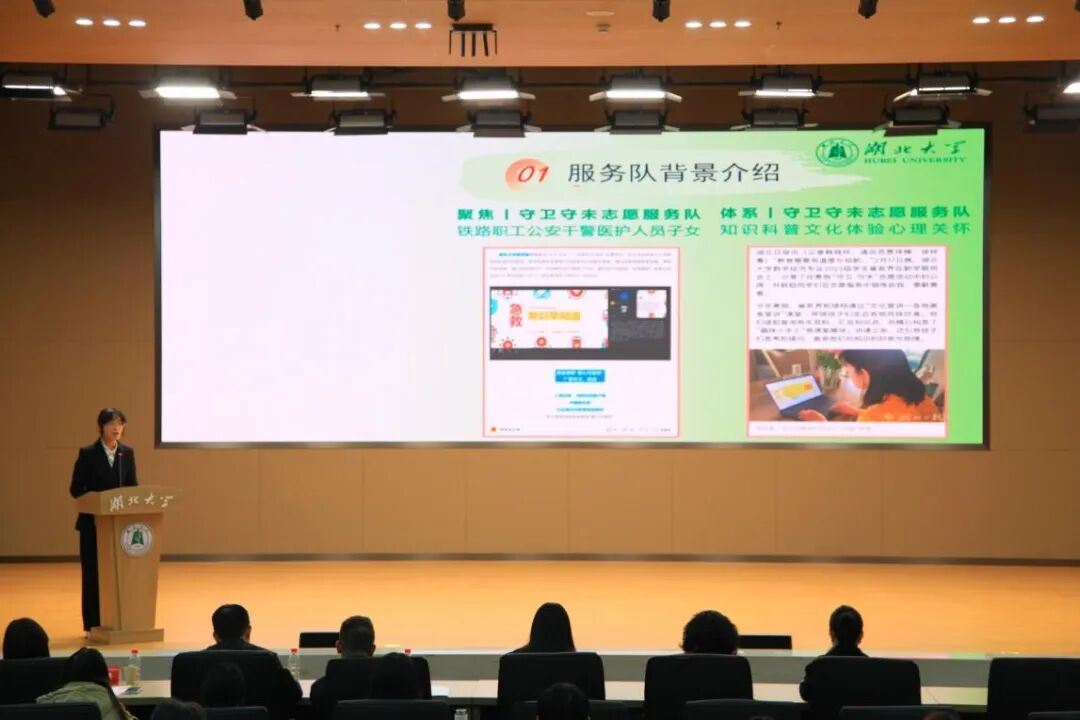 艺术与设计学院“艺术梦工厂”志愿服务队、商学院“守卫·守未”志愿服务队两支优秀团队代表依次登台,聚焦助老助残、暑期学堂等领域取得的项目成果,以专业特色展现我校志愿服务学子的青春风采,用实际成果诠释我校志愿服务工作的育人成效与社会担当。