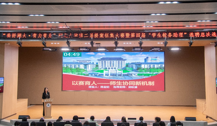 本次大赛是学校落实以生为本理念,深化学生参与校园治理机制建设,助力学生全面发展的重要举措。自9月启动以来,收到来自各学院和学生组织的68份学生提案、96名学生竞聘“学生校务助理”。下一步,学校将持续推动优秀提案落地见效,健全“学生校务助理”长效工作机制,引导青年学子在参与治理中锻炼能力、贡献力量,为“美好湖大”建设注入蓬勃青春动能。