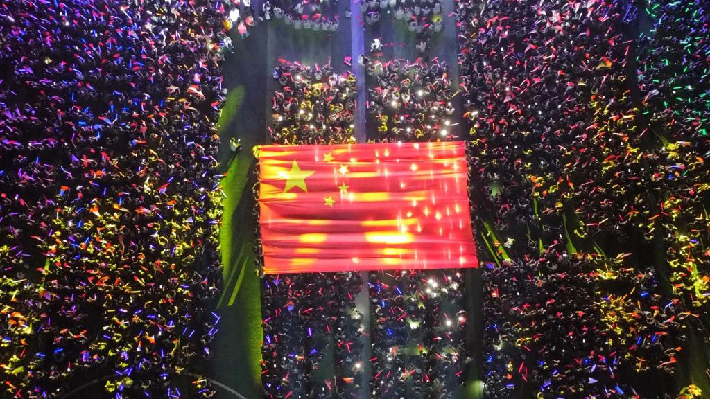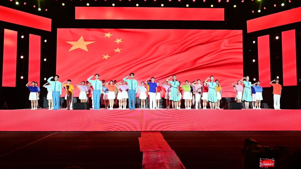 伴随着“我爱你中国”的深情旋律,现场数千名同学们齐心将巨幅国旗缓缓展开,每一步、每一声,都是湖大学子在祖国母亲生日即将到来之时,深情歌颂伟大祖国、衷心祝福伟大祖国的赤诚告白,将整堂艺术思政课推向高潮。