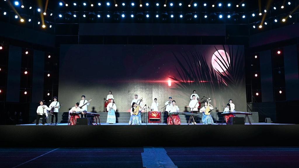 民乐合奏《问月》,将传统民乐与时代精神交融,悠扬的曲调既表达了对未来的浪漫遐想,也隐喻了湖大人探索新未知、勇攀新高峰的执着追求。
