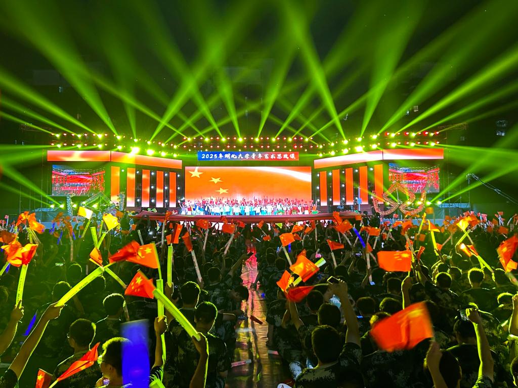 湖北大学党委副书记侯勇,信息支援部队工程大学学员一大队周萌上校、信息支援部队工程大学学员三大队李向仓上校,湖北大学相关部门负责老师、留学生代表、承训部队教官与2025级新生齐聚一堂,在艺术性与思想性的交融中回望峥嵘岁月、锚定奋进方向,汇聚起新时代湖大青年强国兴校的磅礴青春力量!