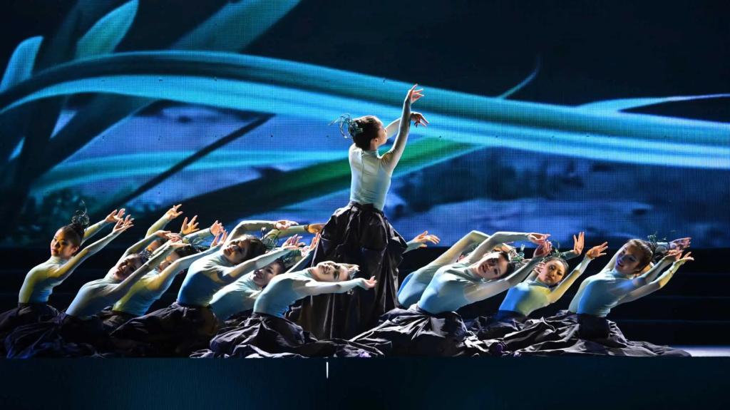 女子群舞《蘭叙》,以兰花为意象,用优美舞姿展现出兰花逆风而生、清雅高洁的品质,象征了“习坎精神”滋养成长的湖大学子自强不息、克难奋进的精神品格。