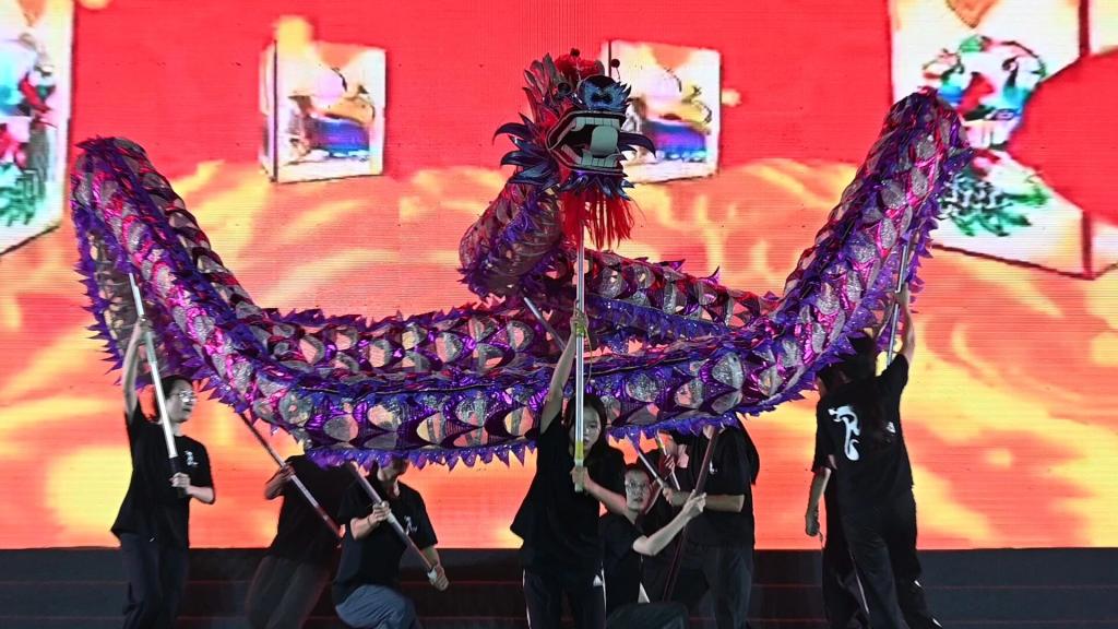 回望烽火路,铸就精神之魂。气势恢宏的《龙腾狮跃》开启晚会热潮,湖北大学龙狮艺术团瞬间点燃全场,中华民族的觉醒与腾飞在龙腾狮跃中赫赫彰显。