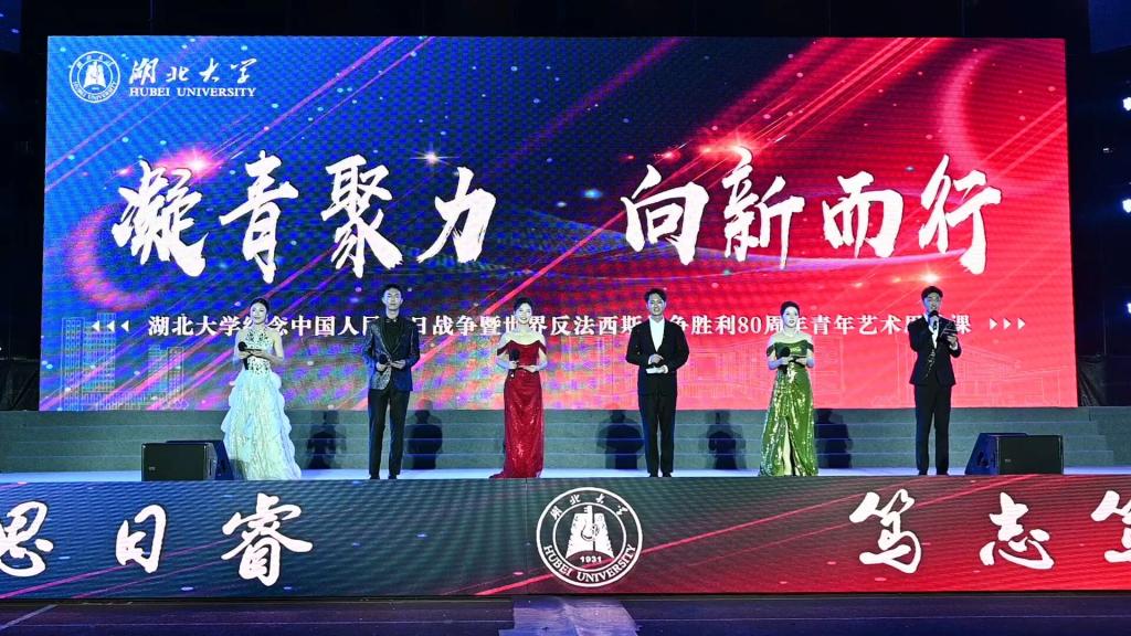 薪火相传八十载,青春奋进正当时。9月28日晚,“凝青聚力 向新而行”湖北大学纪念中国人民抗日战争暨世界反法西斯战争胜利80周年青年艺术思政课在长江新区校区隆重举行。