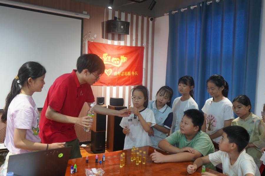 “我们用生活中随处可见的物品展示蕴含高深物理原理的实验,更贴近孩童视角、更能被孩子们所接受。”宣讲团志愿者老师、湖北大学物理学院博士生卢莎介绍到。